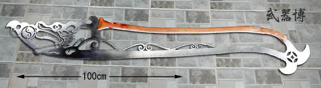 Long Đầu Đại Trát Đao có đầu rồng, đuôi cá cùng phần lưỡi mỏng sắc và phần cán cầm tương đối dài. (Ảnh: Nguồn Internet).