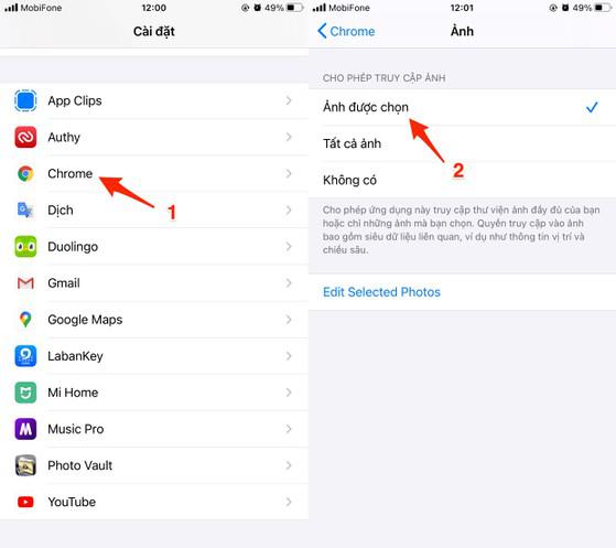 Để kích hoạt tính năng này, bạn hãy vào Settings (cài đặt) - Tên ứng dụng - Photos (ảnh) - Selected Photos (ảnh được chọn).