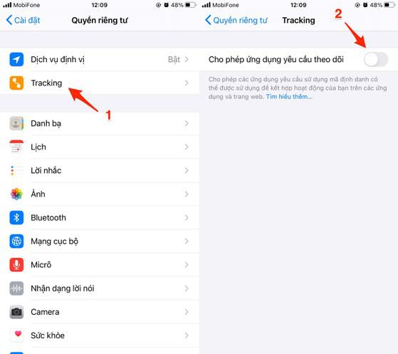 Quy định mới áp dụng cho tất cả các ứng dụng, bao gồm cả những ứng dụng do Apple phát triển. Để kích hoạt tính năng này, bạn hãy vào Settings (cài đặt) - Privacy (quyền riêng tư) - Tracking và kích hoạt tùy chọn Allow Apps to Request to Track (cho phép ứng dụng yêu cầu theo dõi).