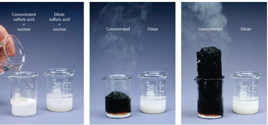 Sulfuric acid đặc có tính phá hủy cực mạnh nhưng vẫn chưa thấm vào đâu so với siêu acid. (trong ảnh: phản ứng của sulfuric acid đặc với đường).