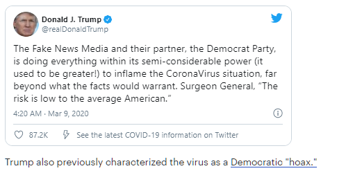 Trump nói rằng ông biết coronavirus là một đại dịch 'rất lâu trước khi' nó được tuyên bố???