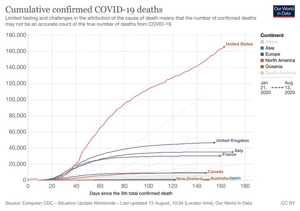 Thế nhưng, chính quyền Donald Trump ĐÃ KHÔNG ÁP DỤNG NHỮNG BIỆN PHÁP TỐI THIỂU mà chính quyền của các quốc gia khác trên thế giới đã thực hiện. Để rồi 6 tháng sau ngày dịch bệnh được phát hiện, khiến cho tỷ lệ tử vong hiện đang gần bằng và sẽ vượt qua 2 quả bom nguyên tử bỏ xuống Hiroshima và Nagasaki vào năm 1945.