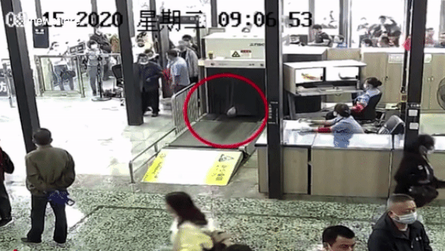 Sự cố được camera giám sát ghi lại hôm 15/9 tại một nhà ga xe lửa ở thành phố Jishou, tỉnh Hồ Nam, Trung Quốc. Vì không muốn phải xếp hàng ở trạm kiểm soát an ninh, một hành khách nam đã nằm lên băng chuyền - nơi có máy quét kiểm tra hành lý.