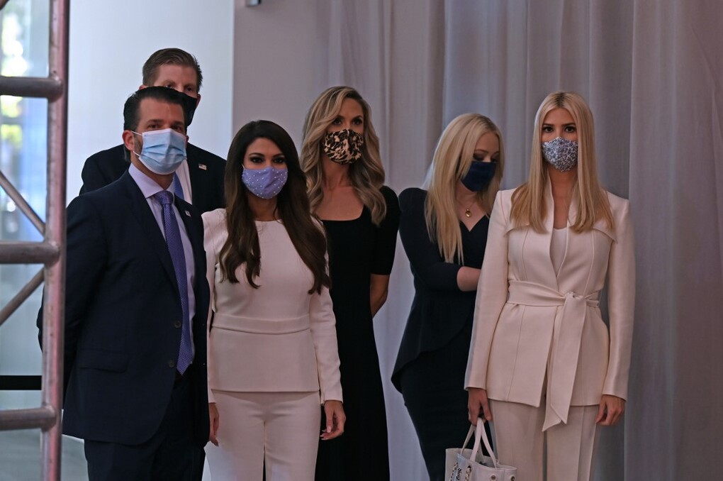 Các thành viên nhà Trump trước cuộc tranh luận của bố ở hội trường Đại học Case Western Reserve, Cleveland, chiều 29/9. Ảnh: AFP.