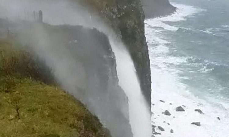 Du khách đã quay được cảnh nước ở một con thác trên đảo Isle of Skye bị gió thổi ngược trở lại rất ngoạn mục.