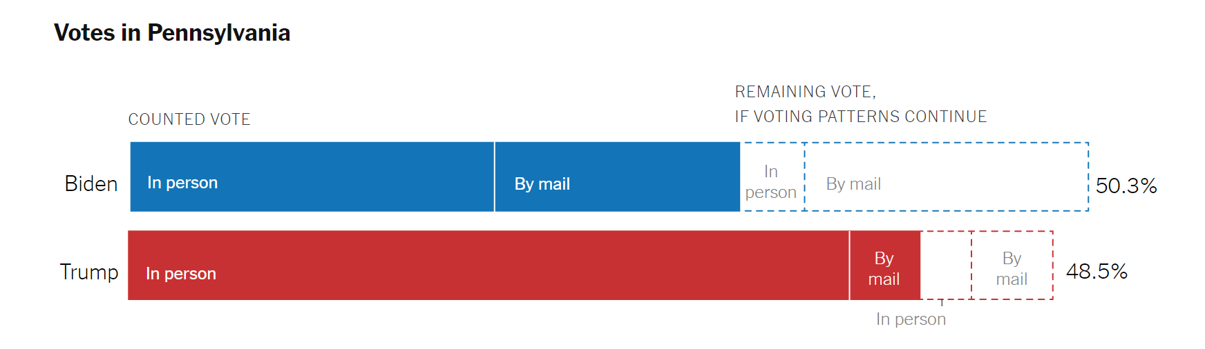 Các phiếu còn lại ở Pennsylvania dường như được áp đảo bầu cho Biden