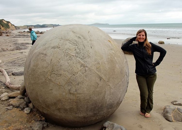 Nằm rải rác dọc theo bãi biển Moeraki Boulders ở New Zealand là vô số những tảng đá hình cầu kỳ lạ. Chúng có dạng tròn như trái trứng khủng long cổ đại. Và người dân địa phương vẫn gọi đó là "đá trứng rồng".