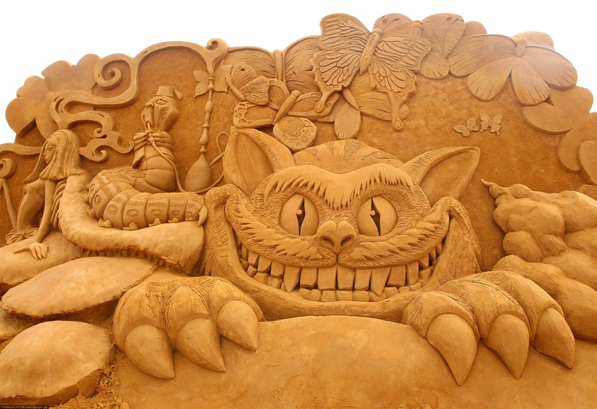 Tác phẩm Alice and the Caterpillar (tạm dịch: "Alice và sâu bướm") được chạm khắc bởi Christina Mija. Đây là một phần của triển lãm điêu khắc Creepy Crawlies Sand ở Melbourne, Australia năm 2011.