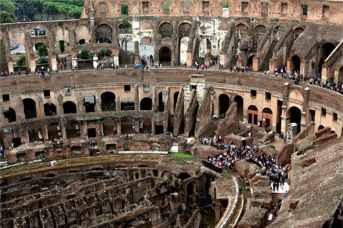 Đấu trường La Mã: Khách du lịch đi bộ trong khu Đấu trường La Mã, Rome. Đây là khu di tích mới được mở cửa từ tháng 10 năm ngoái để khách du lịch viếng thăm.