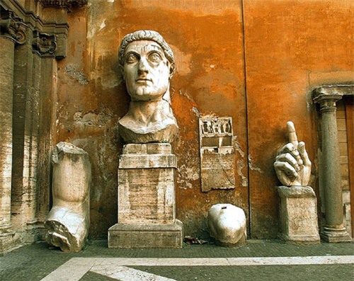 Bảo tàng Capitole: Mảnh vỡ bức tượng cổ bên trong sân Bảo tàng Capitole, nằm tại Quảng trường Campidoglio, Rome. Bảo tàng Capitole chứa bộ sưu tập đồ cổ từ năm 1471, từ thời Đức Giáo Hoàng Sixte IV.