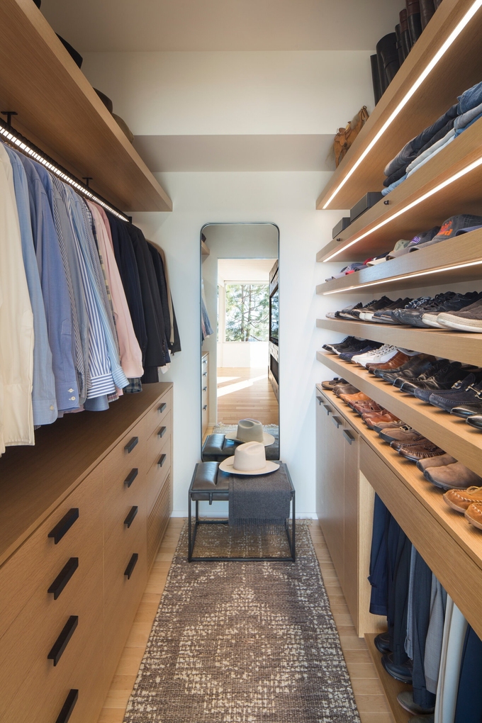 Bạn có thể để giầy trong tủ quần áo để tiện chọn lựa lúc mặc đồ. Theo Musher, thay vì kệ nghiêng, gia chủ nên bố trí kệ phẳng để bày giầy dép cho dễ nhìn.