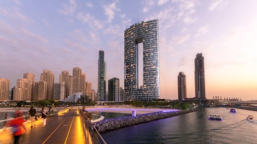Tòa tháp đôi Address Beach bắt đầu đón khách từ tháng 12/2020 có 77 tầng. Trên tầng cao nhất của công trình chính là bể bơi vô cực có tầm nhìn ngoạn mục tới cả khu vịnh Arab, quần đảo Palm Jumeirah và đảo Bluewaters. Trong đó có nhiều công trình nổi tiếng như khách sạn Burj Al Arab, khu Dubai Marina, bến thuyền Dubai...