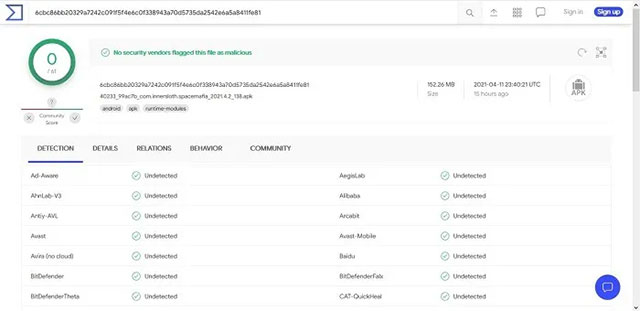 VirusTotal là một giải pháp tuyệt vời khác mà bạn có thể trải nghiệm. Công cụ này có khả năng phân tích toàn diện file APK và giúp phát hiện gần như tất cả các loại virus cũng như phần mềm độc hại phổ biến trên internet hiện nay. VirusTotal rất dễ sử dụng: Bạn chỉ cần tải upload các tệp của mình và đảm bảo rằng chúng không có lỗi. Ngoài ra, bạn cũng có thể sao chép-dán URL trong VirusTotal, hoặc sử dụng chức năng tìm kiếm để kiểm tra địa chỉ IP, miền hoặc băm tệp.