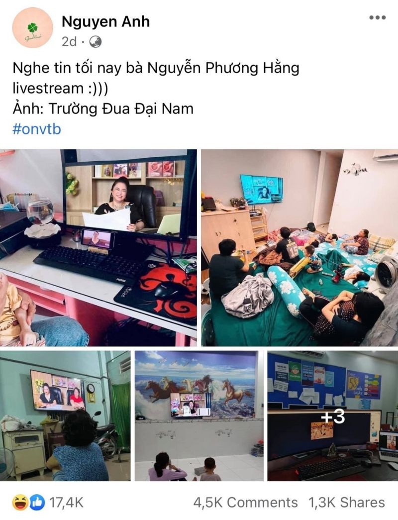 Đỉnh điểm là tối 25/5, livestream của bà Hằng được chia sẻ trên các kênh: Facebook CEO Nguyễn Phương Hằng, Nguyễn Phương Hằng Official, tài khoản Facebook của Trường Đua Đại Nam và kênh YouTube Trường Đua Đại Nam. Tổng số người xem trực tiếp đồng thời trên các kênh này đạt gần nửa triệu. Riêng trang fanpage CEO Nguyễn Phương Hằng đã đạt số người xem kỷ lục hơn 230.000 người xem trực tiếp.