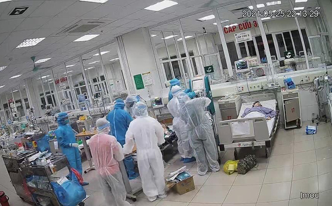 Ngày 7/5, bệnh nhân được xét nghiệm SARS-CoV-2 và cho kết quả dương tính. Bệnh nhân được chuyển đến Bệnh viện Bệnh Nhiệt đới Trung ương cơ sở Đông Anh với chẩn đoán viêm phổi do nhiễm SARS-CoV-2, được điều trị tại khoa cấp cứu, quá trình điều trị bệnh nhân sốt liên tục, tức ngực khó thở, suy hô hấp tăng dần.