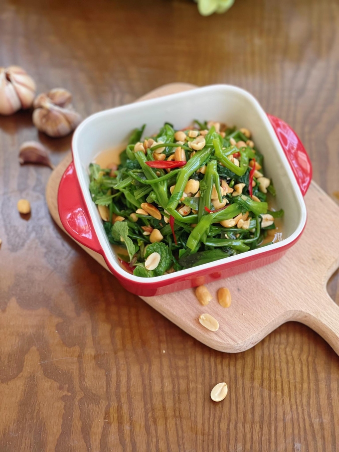 Nộm rau muống tuy đơn giản nhưng hấp dẫn bởi vị thơm bùi, ngậy béo của lạc rang cùng các loại rau thơm. Rau muống xanh mướt, giòn ngon, chua chua ngọt ngọt, thêm chút cay cay của ớt góp phần phong phú cho bữa cơm gia đình bạn.