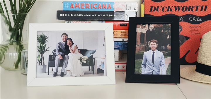 Tháng 6 vừa qua, tôi và Rex tổ chức hôn lễ ở Mỹ. Bức ảnh cưới giản dị được tôi chia sẻ lên trang cá nhân để thông báo tin vui đến bạn bè, người thân ở Việt Nam.