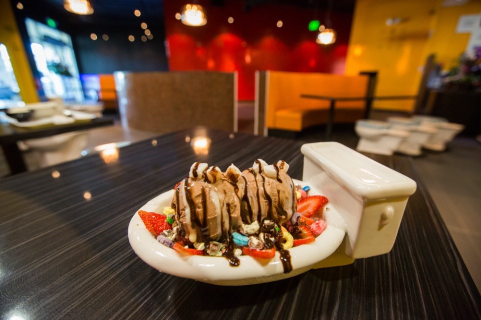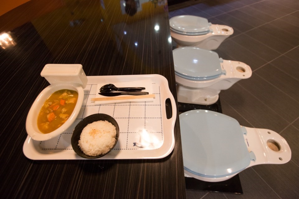 Nhà hàng toilet sẽ khiến nhiều thực khách phải chạy mất dép. Mọi thứ xung quanh đều là toitet. Thậm chí, đồ ăn cũng được bày biện trong một chiếc toilet nhỏ.