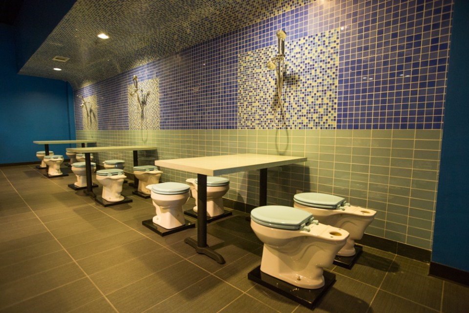 Quán ăn này là nhà hàng đầu tiên tại Mỹ thiết kế theo chủ đề nhà vệ sinh, nhưng nó không phải là địa điểm đầu tiên trên thế giới. Ở Đài Bắc (Trung Quốc) đã từng có một nhà hàng theo chủ đề vệ sinh, và thành công đến mức nó đã lan rộng ra hơn một chục quán ăn khác chỉ riêng ở Đài Loan.