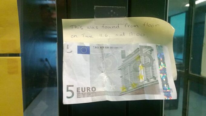 Nếu bạn làm mất tiền ư? Hãy yên tâm rằng sẽ có người tìm cách trả cho bạn. "Bạn tôi chuyển đến Phần Lan sống. Đây là những gì cô ấy nhìn thấy trên bảng thông báo tại chỗ làm việc của mình. Cô ấy đã không thể tin vào mắt", người đăng bức ảnh trên chia sẻ. Ảnh: Twitter