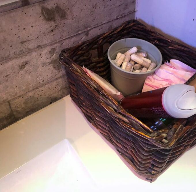 Tại nhiều cửa hàng, bạn có thể tìm thấy một chiếc giỏ đựng gel xịt tóc, đồ dùng vệ sinh cho phụ nữ trong nhà vệ sinh nữ và chúng hoàn toàn miễn phí. Ảnh: Twitter