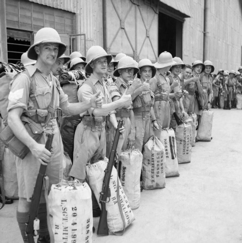 Khi chiến tranh bùng phát ở Thái Bình Dương, quân tiếp viện được điều động một cách vội vã ở các quốc gia thuộc địa, bao gồm các đơn vị của Úc và Ấn Độ; nhiều binh sĩ, bao gồm cả người Australia và Ấn Độ, chỉ được huấn luyện qua loa. Ảnh: Warhistory.