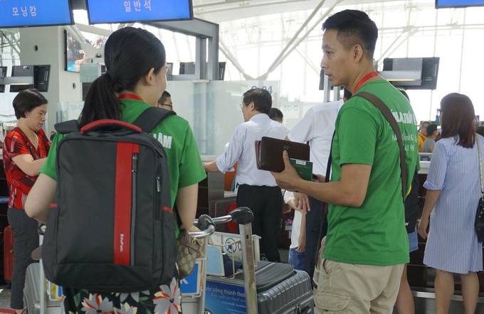 Khi được hỏi bay đến đâu, có người chỉ cười với nhân viên hàng không, trả lời không biết rồi gọi hướng dẫn viên trợ giúp.