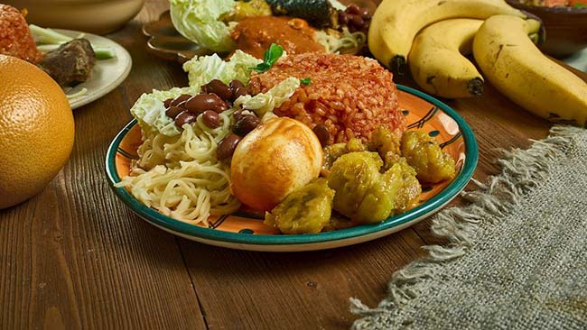 11. Waakye Mặc dù có nguồn gốc từ các vùng phía bắc của Ghana, món ăn làm từ gạo và đậu được gọi là waakye này ngày nay đã được tiêu thụ ở nhiều quốc gia. Cho dù được ăn vào bữa sáng hay bữa trưa, món ăn này có thể được chế biến phong phú và khiến người ta thích thú bằng cách thêm vào một danh sách các món ăn kèm không thể thiếu.