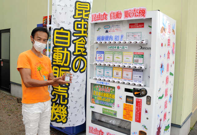 Một chiếc máy bán hàng tự động vừa được lắp đặt tại một cửa hàng ở Gifu (Nhật Bản). Điều đáng nói là nó không bán những thứ thông thường như đồ ăn, nước uống mà lại là snack ... côn trùng đủ loại. Hiện có khoảng 20 chiếc máy tương tự trên khắp Nhật Bản.