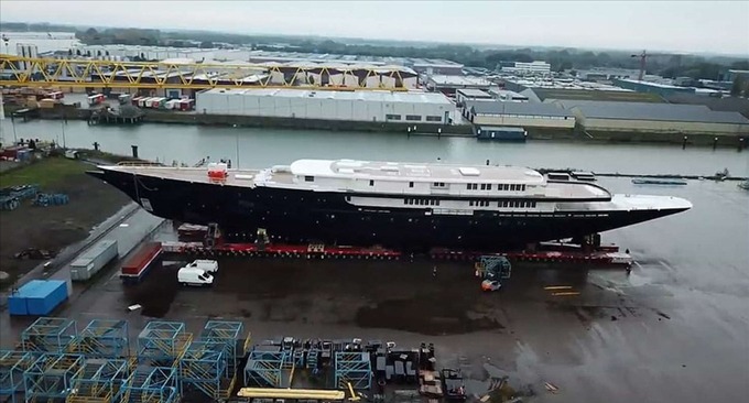 Siêu du thuyền lớn nhất thế giới trị giá 500 triệu USD của Jeff Bezos sẽ có ba cột buồm, lần đầu tiên được nhìn thấy tại xưởng đóng tàu ở Hà Lan.