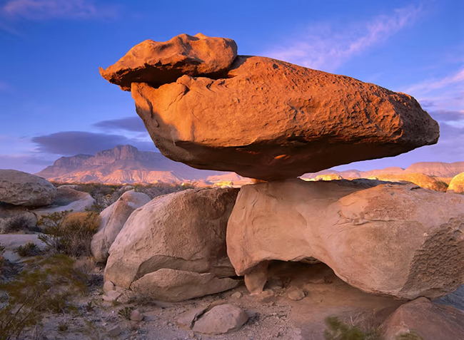 El Capitan, Mỹ: Nhắc đến El Capitan, bạn có thể nghĩ đến những bức tường khổng lồ dài 1.000m của Công viên Quốc gia Yosemite. Nhưng những tảng đá ở vườn quốc gia Guadalupe Mountains, Texas cũng không kém phần quyến rũ, đặc biệt là khối đá cân bằng này.