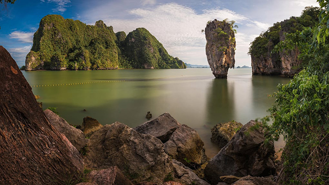 Ko Tapu, Thái Lan Ko: Tháp đá vôi cao 20m và nặng hàng tấn này, nhìn tưởng chừng chỉ một cơn sóng biển lướt qua là đổ ập xuống. Nhưng thực tế nó đã đứng vững chãi ở đây qua hàng trăm năm.