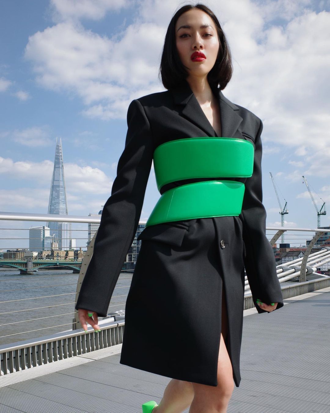Chiếc dây da dạng corset bản rộng đã trở thành điểm nhấn trên mạng xã hội thời gian qua. Hãng thời trang Ý Bottega Veneta lại khiến người hâm mộ thời trang mê mẩn với những phụ kiện độc đáo, từ giày đế dày đến ủng cao su làm từ bã cà phê và túi xách được trang trí bằng dây xích kim loại nặng. Mặc dù đây thường là những chiếc túi xách nhận được nhiều sự chú ý nhất, nhưng lần này một chiếc thắt lưng mới đã lọt vào mắt xanh của những người hâm mộ Instagram.