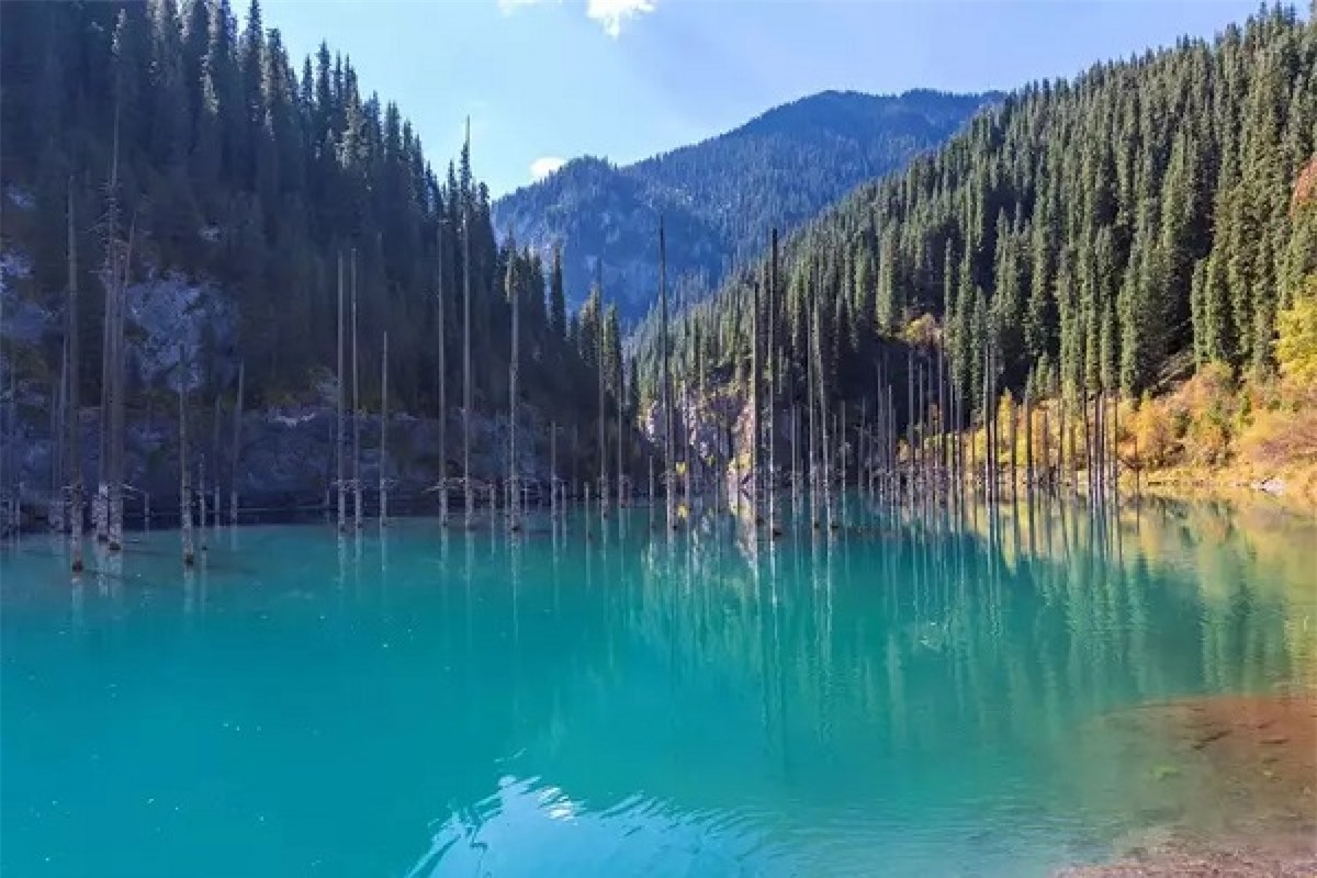 Đây là một hồ nước trong vườn quốc gia Kolsai Lakes, nằm ở độ caohơn 2.000 mét so với mực nước biển. Trận động đất Kebin năm 1911 đã gây ra một vụ lở đá vôi lớn, dẫn đến sự hình thành của hồ nước này. May mắn là nhiệt độ lạnh giá của nước hồ đã giúp bảo tồn khu rừng dưới mặt nước.Trong những năm gần đây, hồ Kaindy đã trở thành một điểm tham quan, lặn và câu cá nổi tiếng.