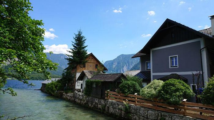 Muốn đến được Hallstatt bắt buộc du khách phải đi thuyền/ phà qua hồ. Khi con thuyền từ từ rẽ nước, cảnh sắc tuyệt đẹp sẽ dần hiện ra trước mắt với những ngôi nhà rực rỡ sắc hoa in bóng trên mặt nước.