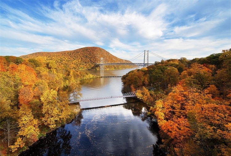 Màu sắc mùa thu dọc theo Lạch Popolopen và Sông Hudson, bắc qua Cầu Núi Gấu, trong Công viên Bang Bear Mountain.