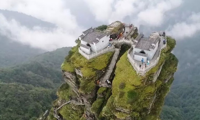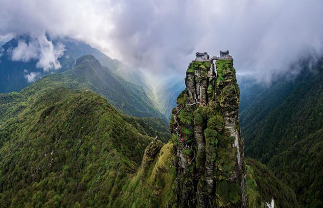 Nằm ở độ cao gần 2500 mét so với mực nước biển, đỉnh núi Phạm Thịnh ở Quý Châu, Trung Quốc được ví như tiên cảnh nhân gian với bốn bề bao quanh bởi mây khói. .