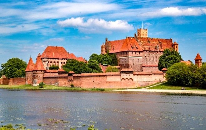 Lâu đài Malbork (Marienburg) nằm dọc theo dòng sông Nougat, phía đông tỉnh Pomerania (Ba Lan) được xem là lâu đài lớn nhất thế giới được đo theo diện tích đất liền.