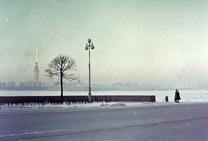 Bên bờ sông Neva ở thành phố Leningrad. Bê kia sông là pháo đài Peter & Paul, được xây từ năm 1706-1740 .