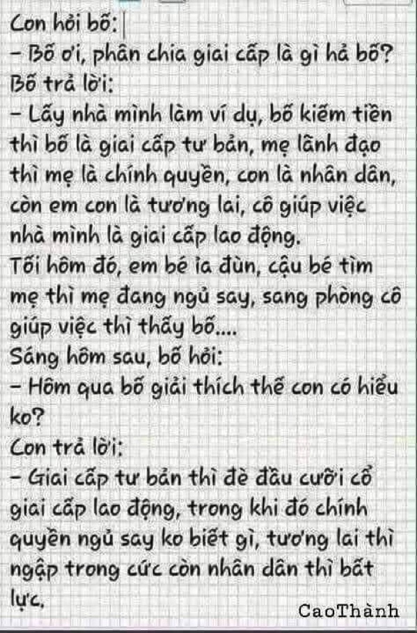 PHAN CHIA GIAI CAP rat la Chinh Xac cho xa hoi CSVN........