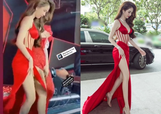 Hương Giang cũng từng gặp sự cố với kiểu trang phục lụa như thế này.