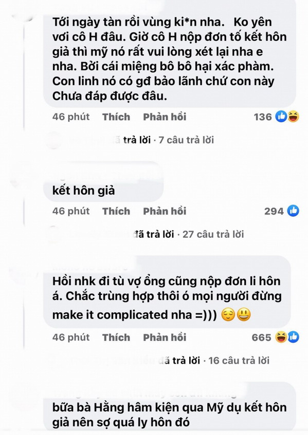 “Chắc định trốn vụ kết hôn giả để lấy quốc tịch Mỹ đây mà. Giờ càng lúc càng lộ ra con người thật”