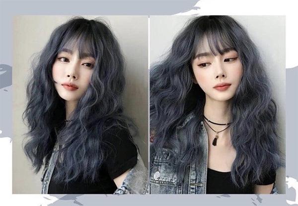 Màu xanh đen nhạt là một trong những biến tấu độc đáo được nhiều người lựa chọn. Màu tóc này giúp bạn thêm nổi bật cuốn hút dù xuất hiện bất cứ nơi đâu.