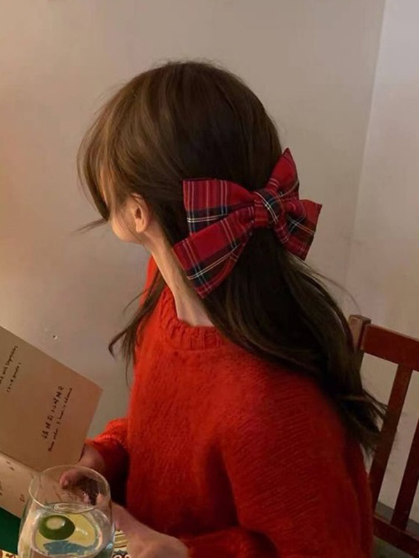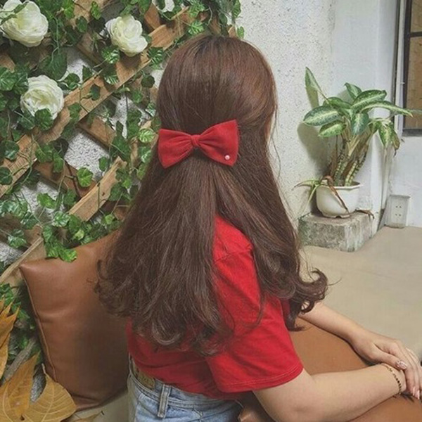 Một chút nhấn nhá cho mái tóc với chiếc nơ đỏ tạo nét dịu dàng cho phái đẹp.