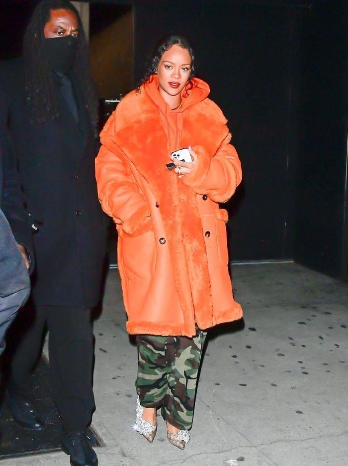 Rihanna đã chọn thiết kế camo của CELINE. "Nữ hoàng phong cách đường phố" đã cho thấy quần túi hộp là sự kết hợp lý tưởng cho những chiếc áo khoác mùa đông hay giày cao gót. Ảnh: Raymond Hall.