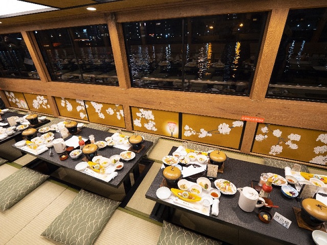 Một trong những cách tốt nhất để trải nghiệm văn hóa ẩm thực Nhật Bản là tham gia vào chuyến du thuyền Yakatabune vào buổi tối. Yakatabune là loại thuyền du lịch truyền thống của Nhật Bản đã phổ biến từ giữa thế kỷ 18. Giới quý tộc thường sử dụng loại thuyền này để ngắm hoa anh đào vào mùa xuân và tránh cái nóng vào mùa hè.