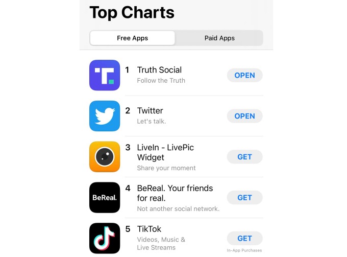 Trust Social dẫn đầu về số lượt tải tại Mỹ ngày 27/4.