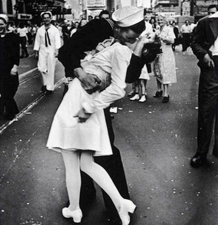 Bức ảnh lịch sử được chụp vào năm 1945, biểu tượng cho niềm hạnh phúc khi chiến tranh kết thúc. Lúc này, người Mỹ ăn mừng Chiến tranh thế giới thứ II chấm dứt. Tuy nhiên thực tế thì hai nhân vật chính trong bức ảnh không hề quen biết nhau.
