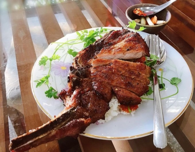 Miếng sườn lớn che hết phần cơm bên dưới. Ảnh: Instagram minacopham