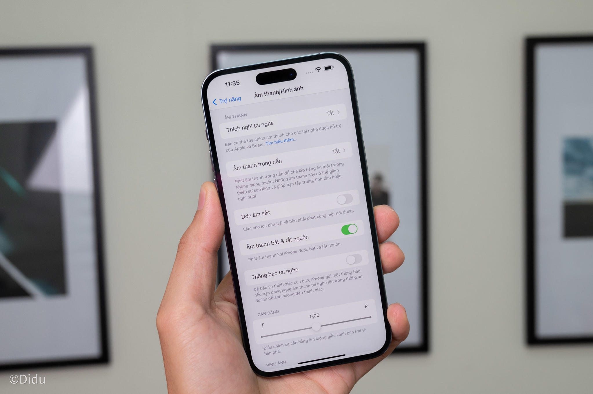 Để bật tính năng này, mọi người vào cài đặt, trong phần trợ năng chọn âm thanh & hình ảnh. Ở đó sẽ có mục Âm thanh khi bật/tắt nguồn.
